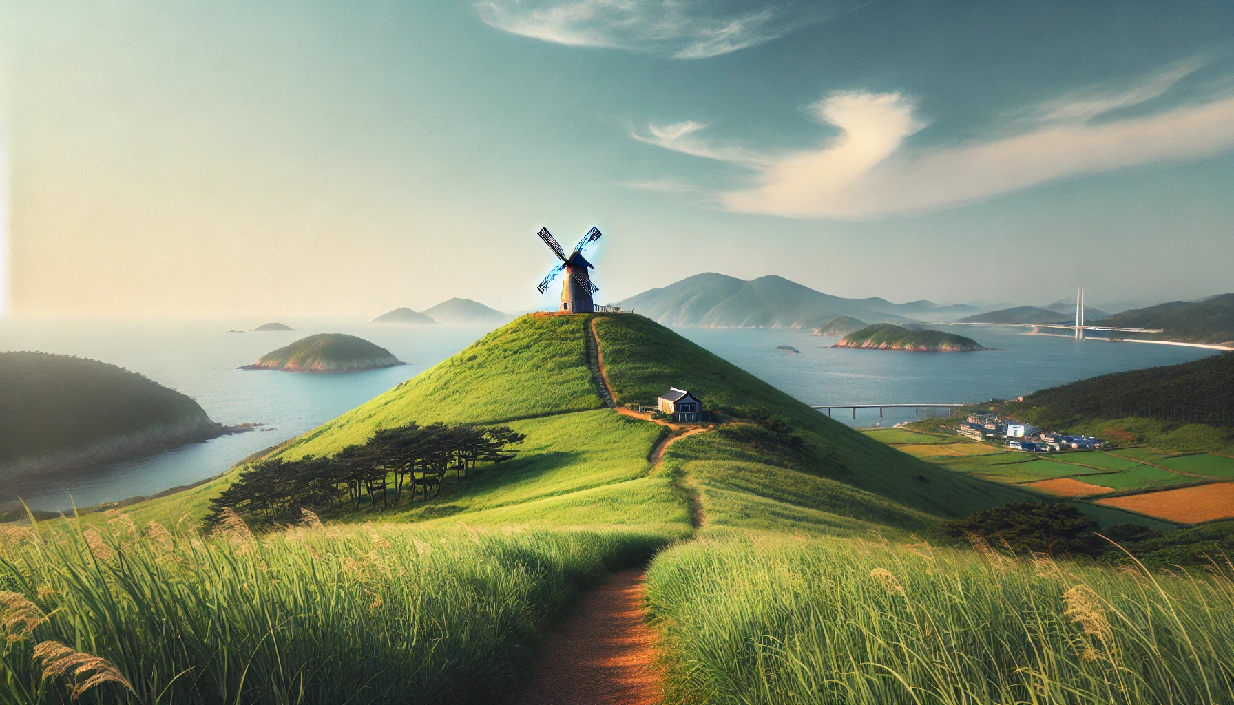 거제도 바람의 언덕은 한없이 펼쳐진 초원과 끝없는 바다 전망으로 유명한 곳입니다. 특히 이곳의 하이라이트는 시원한 바람과 함께 펼쳐지는 넓은 초록 들판입니다. 많은 관광객들이 사진을 찍고, 바다를 바라보며 산책을 즐기기 좋은 장소입니다. 바람이 살랑이는 언덕 위를 걷다 보면 일상의 스트레스가 사라지고, 자연과 하나가 되는 기분을 느낄 수 있습니다.
