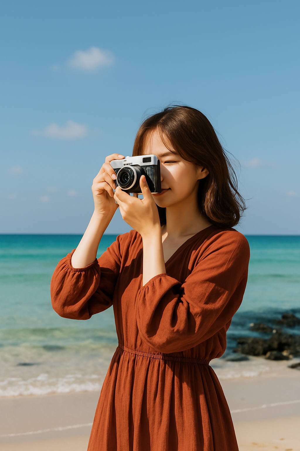 제주의 대표적인 해변 중 하나인 협재는 바다의 색이 특히 맑고 푸르러서 인물과 배경이 모두 잘 살아난다. 물이 얕고, 백사장도 넓어 다양한 구도의 사진이 가능하다. 촬영 팁: 구름이 약간 낀 날의 빛이 더 은은하게 나오며, 해 질 녘 하늘을 등지고 역광으로 찍는 실루엣샷 추천.