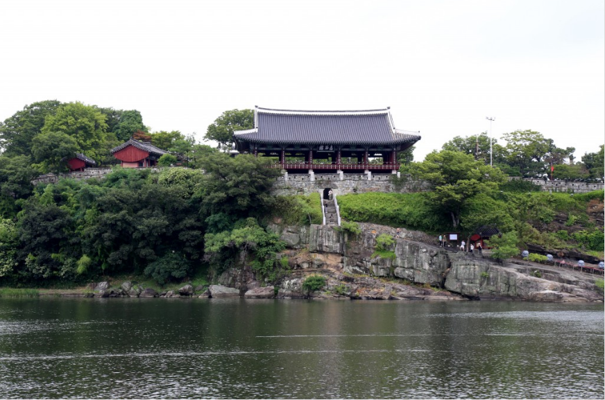 촉석루는 진주성 내에서 가장 아름다운 장소 중 하나로 손꼽힙니다. 낙동강 지류인 남강을 바라보고 있는 이 누각은 계절마다 풍경이 달라 사진 촬영지로도 많은 사랑을 받고 있습니다. 특히 가을에는 진주남강유등축제와 함께 촉석루가 환상적인 야경을 자랑하는 명소로 변신합니다. 이곳은 단순히 풍경만 즐기는 곳이 아닌, 논개의 충절을 기리는 상징적 공간이기도 합니다. 누각 앞에 위치한 의암(義巖)은 논개가 왜장을 끌어안고 뛰어내렸다고 전해지는 장소이며, 누각 안팎에는 다양한 기록과 기념비들이 마련되어 있어 역사의 현장을 느끼기에 충분한 감동을 줍니다.